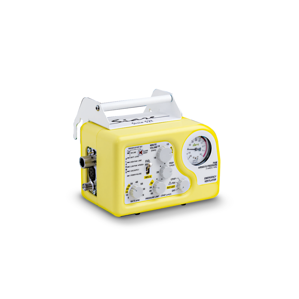 Sirio S2/T è un ventilatore polmonare compatto e leggero, progettato per garantire un supporto respiratorio sicuro ed efficace nel trasporto pre-ospedaliero e nelle emergenze intra-ospedaliere. Destinato alla ventilazione di pazienti adulti, pediatrici e neonatali (minimo 3 kg), ha parametri respiratori impostabili che includono il limite di pressione, la frequenza respiratoria (rate), la PEEP e il volume minuto, consentendo di adattare il supporto ventilatorio alle esigenze del paziente.