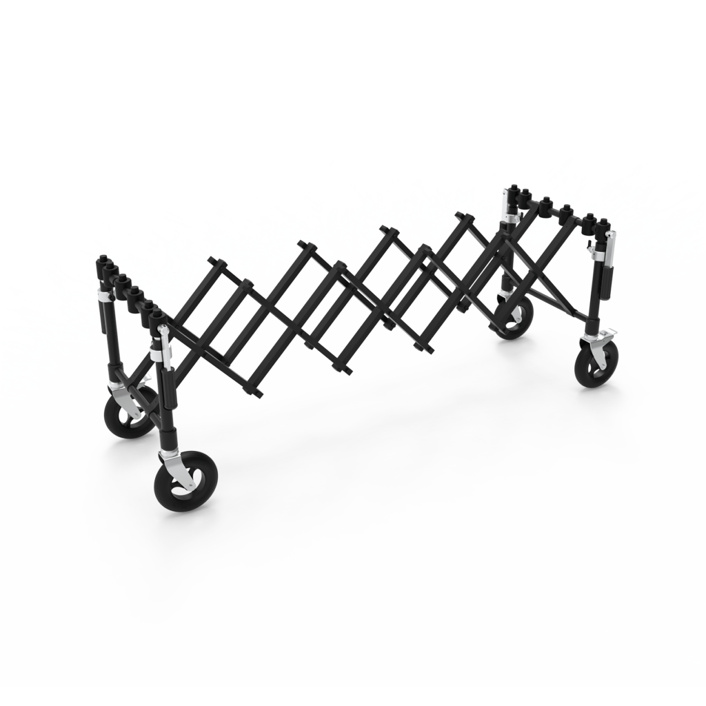 Designed and manufactured in Italy, the Z521 multi-level funeral trolley combines durability, intuitive design, and usability. Its lightweight aluminum frame allows easy maneuverability even by a single operator, while stainless steel joints ensure long-lasting structural integrity. All moving parts feature precisely lubricated nylon and Teflon rings, guaranteeing smooth and silent opening and closing. It offers 4 adjustable height levels, providing maximum versatility for various liturgical or logistical needs, and supports a maximum load capacity of 454 kg, with a usable surface of up to 169 cm.